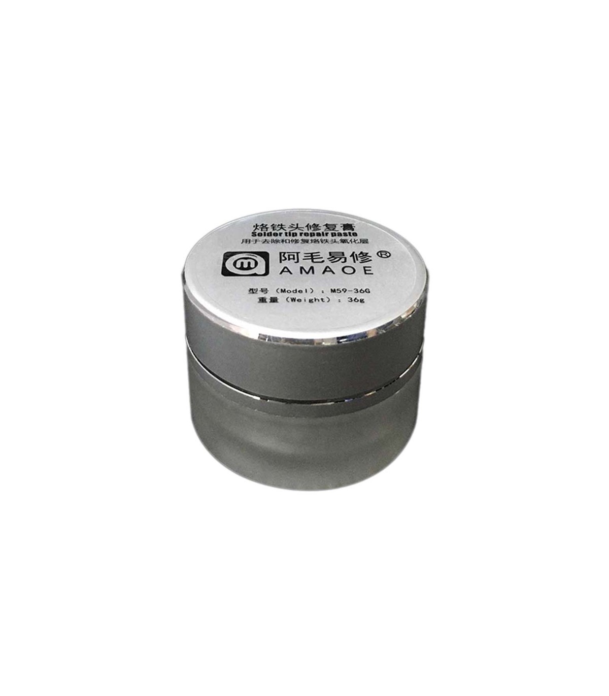 AMAOE M59-36G خمیر/پودر احیای نوک هویه برای پاک‌کردن اکسید و Re-Tin نوک‌های تیره/بی‌قلع است. کافی است نوک را به دمای کاری رسانده، چند ثانیه داخل خمیر بزنید تا اکسیدها برداشته و لایه قلع تازه شکل بگیرد؛ نتیجه، انتقال حرارت بهتر و عملکرد پایدارتر است. این مدل با وزن ۳۶g عرضه می‌شود و در فروشگاه‌های بین‌المللی با همین کُد (M59-36G) لیست شده است؛ نمونهٔ قیمت خرد از $3.90 (و در تیراژ بالا تا $1.90). توجه: تینر ابزاری برای احیای موردی است؛ اگر آبکاری نوک آسیب جدی دیده باشد، باید نوک تعویض شود.