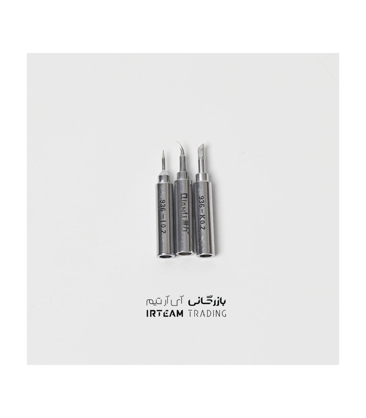 نوک‌های QIANLI 936 از نوع استاندارد 900M بوده و برای ایستگاه‌ها/دستگاه‌های Hakko 936/937/907/FX-600 و هم‌رده‌ها طراحی شده‌اند. این سری در فرم‌های I (سوزنی، مثل I0.2/I0.3/I0.4)، K (چاقویی)، J (زاویه‌دار میکرو)، C (پخ 1C/3C) و D (اسکنه 1.2D/2.4D) عرضه می‌شود و با سوجون 936D، QUICK 706W/700، GORDAK 952 و… نیز سازگار گزارش شده است. ویژگی‌های کلیدی شامل هدایت حرارتی خوب، گرمایش سریع، آبکاری چندلایه با مقاومت به خوردگی/اکسیداسیون و دوام بالا برای قلع‌های Lead-Free است. طول رایج برخی مدل‌ها ≈41mm است.