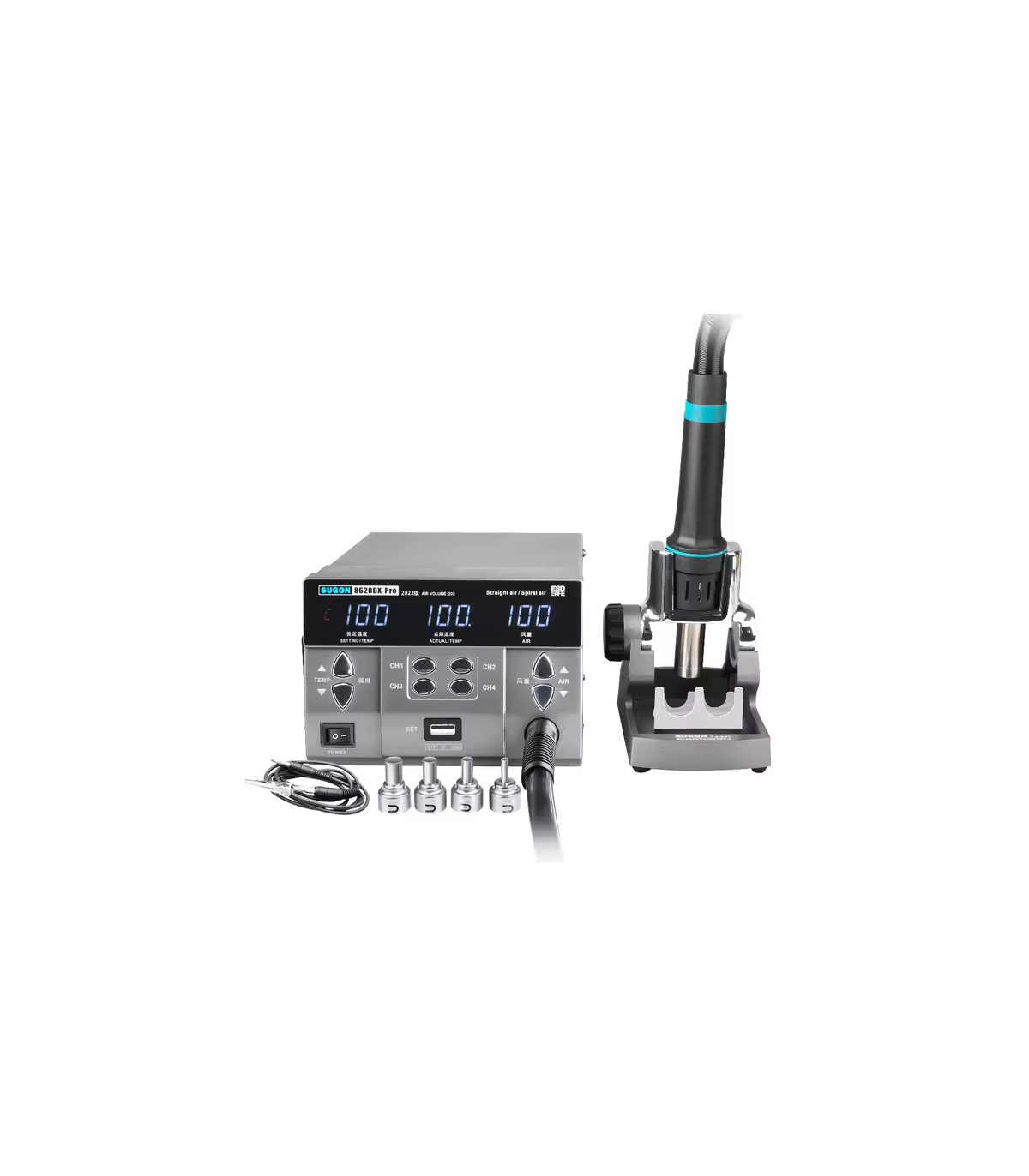 SUGON 8620DX یک هیتر قدرتمند با توان 1300 وات و فن براشلس است که برای تعویض آیسیهای بزرگ، کار روی بردهای چندلایه و شورتیابی حرارتی طراحی شده. سرعت گرمشدن بالا و 4 کانال حافظه، کار تعمیرکار را سریعتر میکند.