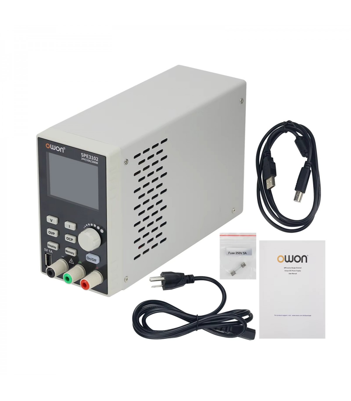 منبع تغذیه OWON SPE3102 دستگاهی با قابلیت تنظیم ولتاژ تا ۳۰ ولت و جریان تا ۱۰ آمپر است که در دو حالت جریان ثابت (CC) و ولتاژ ثابت (CV) عمل میکند. این منبع تغذیه دیجیتال مناسب استفاده در آزمایشگاهها، تعمیرات موبایل و سایر پروژههای الکترونیکی میباشد. دارای صفحه نمایش دیجیتال بزرگ جهت نمایش دقیق ولتاژ و جریان و دکمههای کنترلی برای تنظیم آسان است. محافظت در برابر اتصال کوتاه، اضافهبار و اضافه ولتاژ، موجب افزایش ایمنی و طول عمر دستگاه میشود. طراحی جمع و جور، بدنه فلزی مقاوم و تهویه مناسب از دیگر ویژگیهای بارز این منبع تغذیه است.
