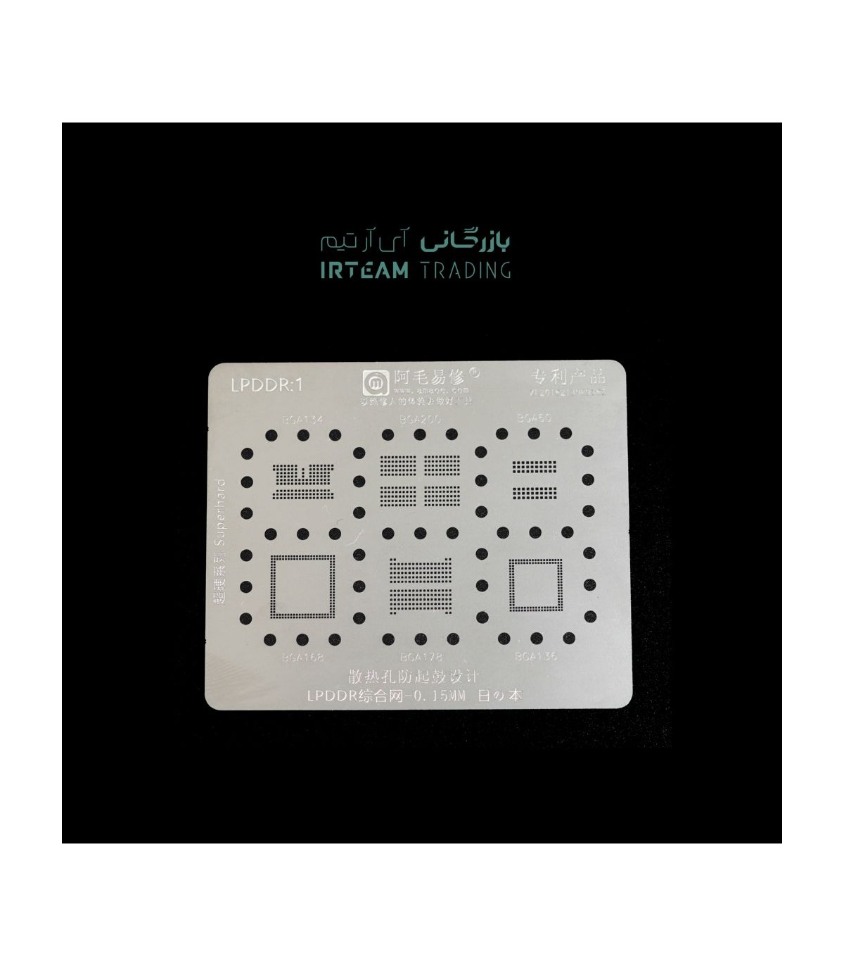 - یک عدد شابلون AMAOE LPDDR1 فولادی CNC شده